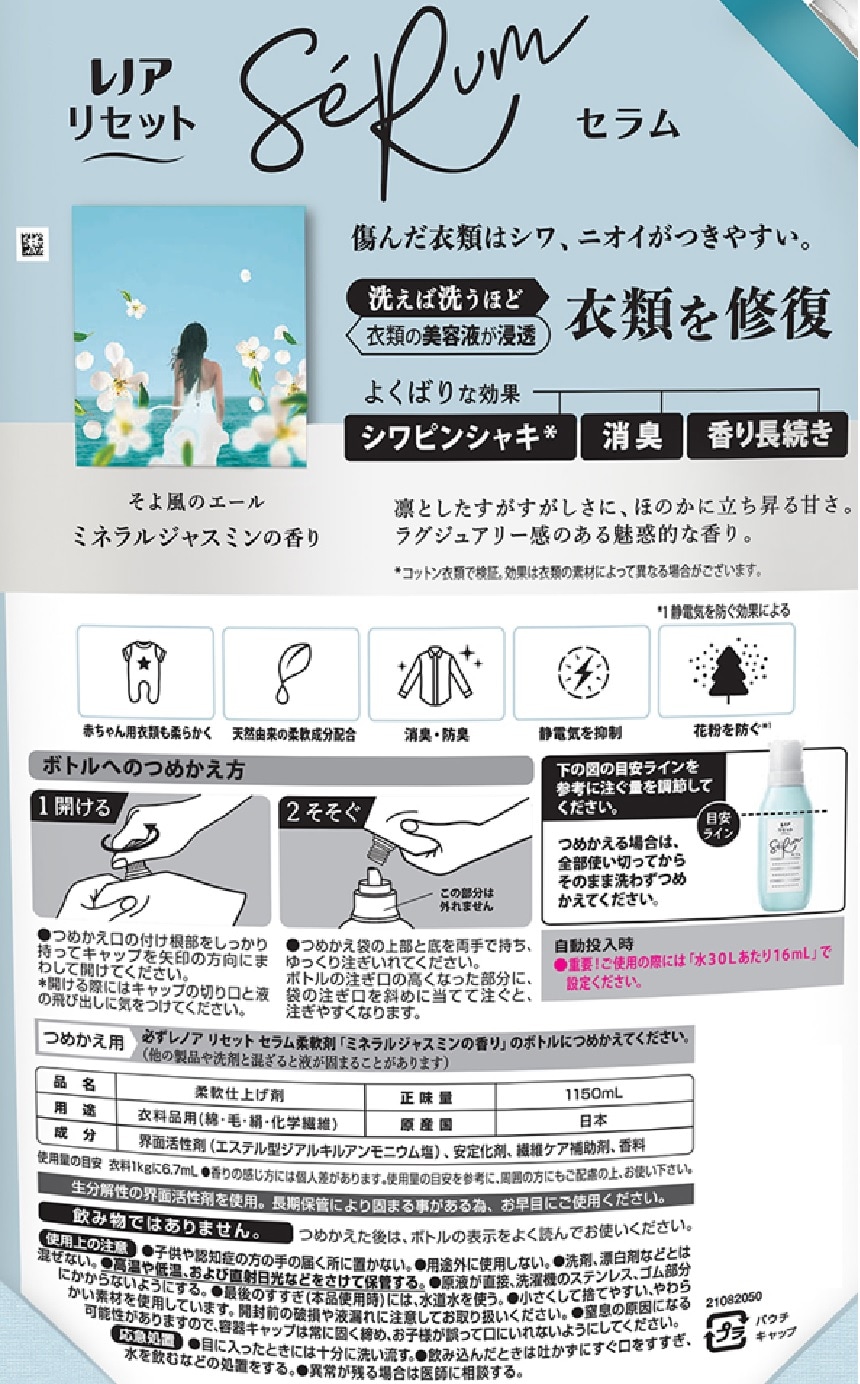 【A】(送料込)P&G レノアリセット セラム 柔軟剤 ミネラルジャスミン つめかえ 超特大 1150ml×6個《沖縄・離島配送不可》