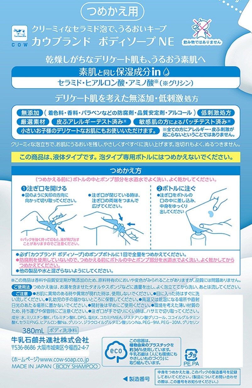 【A】(送料込)牛乳石鹸 カウブランド 無添加 ボディソープ つめかえ 380ml×21個《沖縄・離島配送不可》