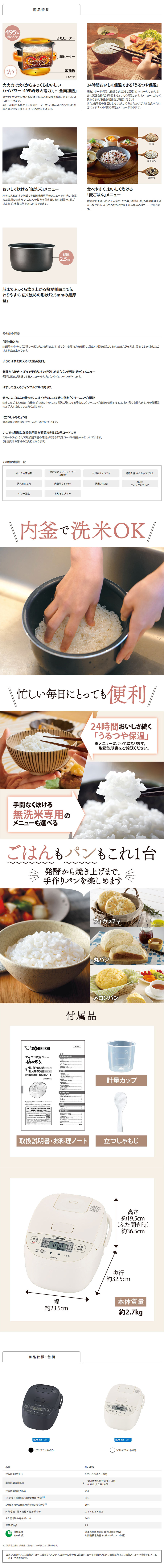 【D】(送料込)[ソフトホワイト/3合炊き] 象印(ZOJIRUSHI)/極め炊き マイコン炊飯ジャー (うるつや保温/無洗米メニュー)/NL-BF05-WZ《沖縄・離島配送不可》