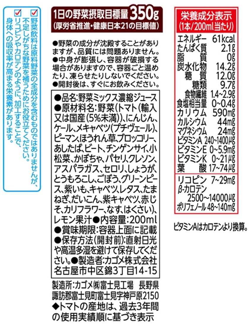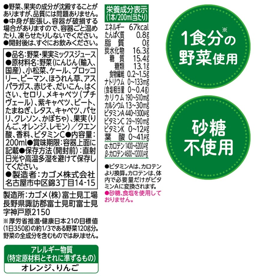 ※1:野菜飲料は原料野菜の全成分を含むものではありませんが、不足しがちな野菜を補うためにお役立てください。
