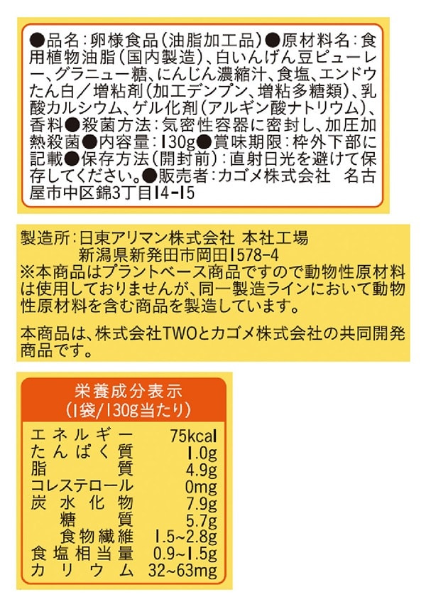 にんじん、白いんげん豆を用いた野菜半熟化製法で卵のふわとろ食感や色合いを実現。