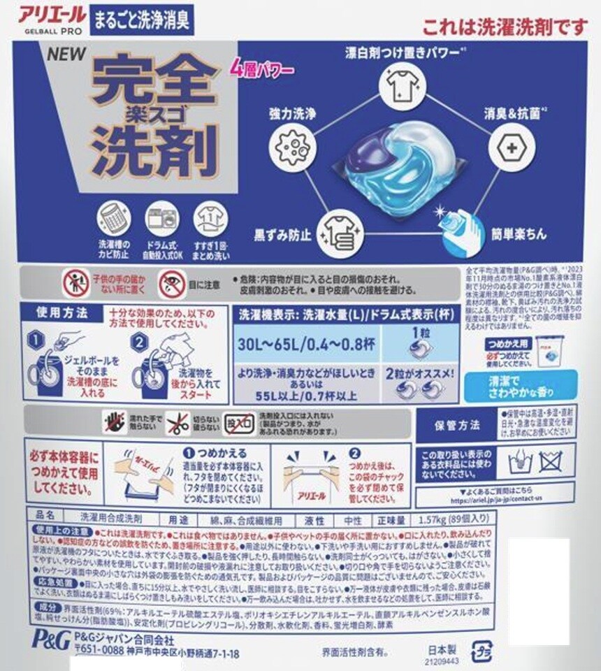 【A】(送料込)アリエール ジェルボール プロ つめかえ テラジャンボサイズ 89個入×3袋《沖縄・離島配送不可》のレビュー