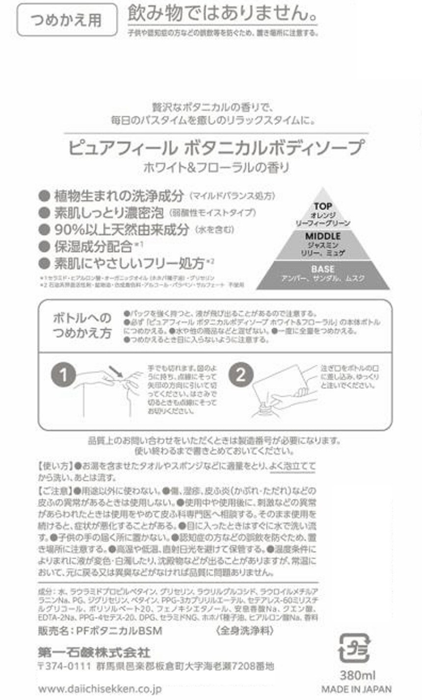 【A】(送料込)ピュアフィール ボタニカルボディーソープ ホワイト&フローラル 詰替 380ml×20個《沖縄・離島配送不可》