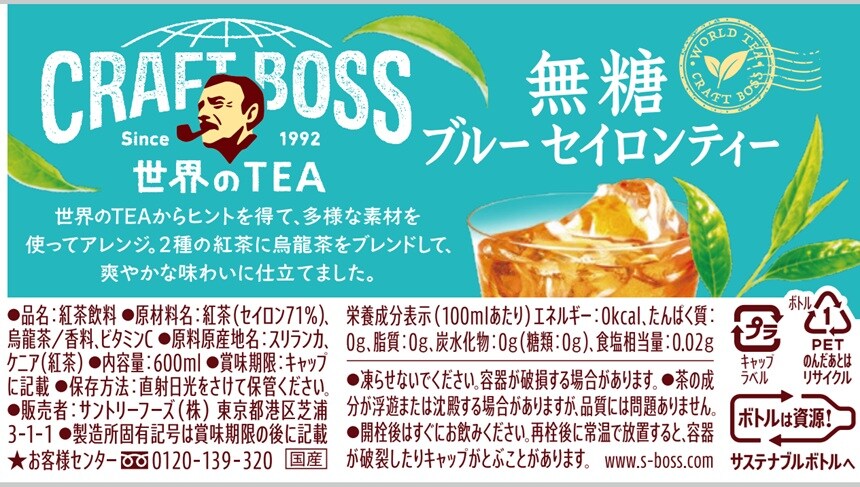 【B】サントリー クラフトボス ブルー セイロンティー無糖 600ml×24本《沖縄・離島配送不可》