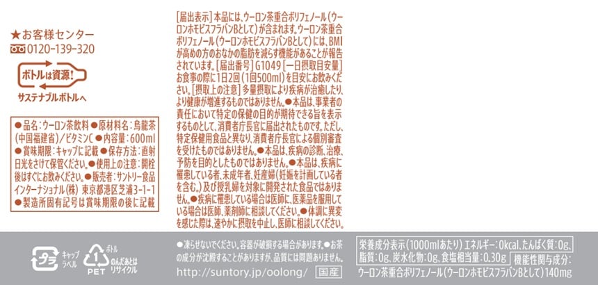 おいしく、おなかの脂肪を減らす機能性表示食品サントリー烏龍茶OTPP。