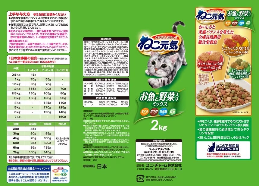 【D】(送料込)ねこ元気 お魚と野菜ミックス 2kg×1個《沖縄・離島配送不可》