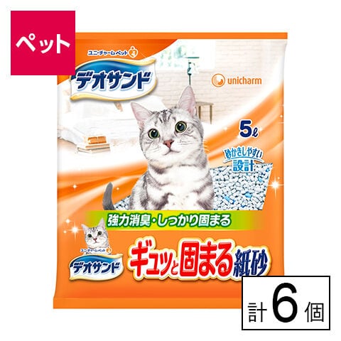 【D】(送料込)デオサンド ギュッと固まる紙砂 5L×6個《沖縄・離島配送不可》