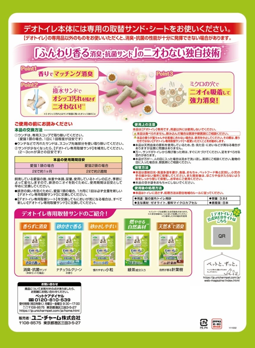 ※2:愛猫1頭(体重8kgまで)のデオトイレ使用時。ウンチをした場合は早く取り除いて下さい