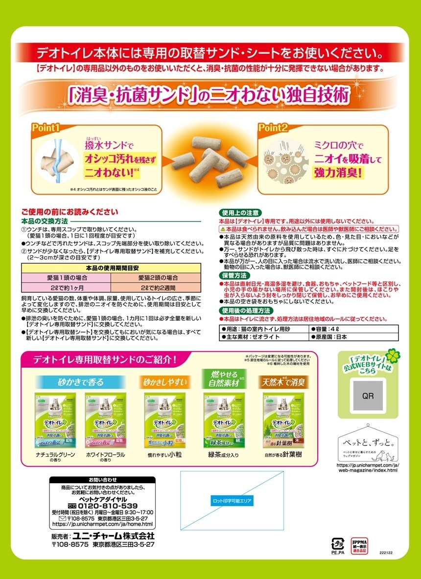 【D】(送料込)デオトイレ 飛び散らない消臭・抗菌サンド 4L×1個《沖縄・離島配送不可》