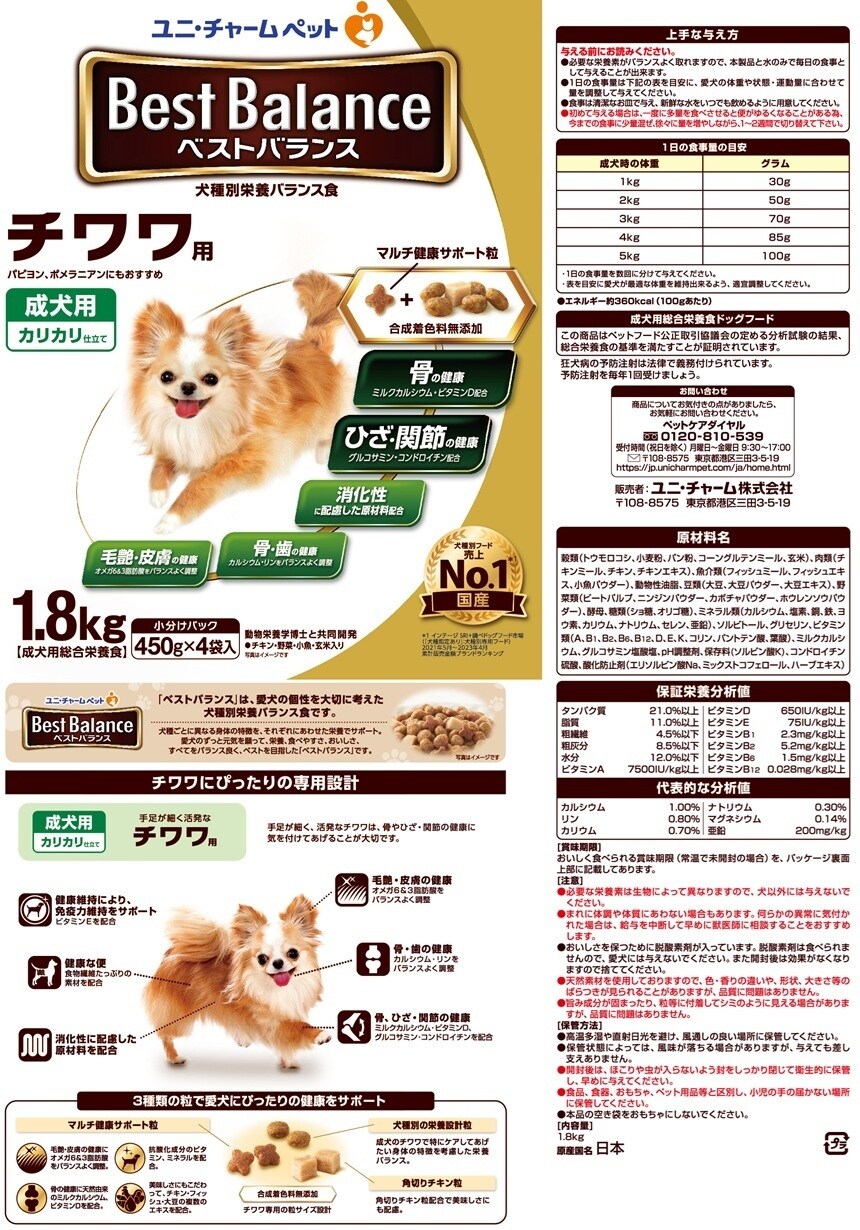 【D】(送料込)ベストバランス カリカリ仕立て チワワ用 1.8kg×4個《沖縄・離島配送不可》
