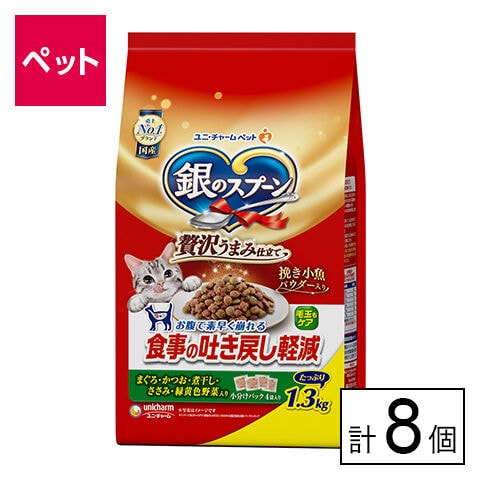 【D】(送料込)銀のスプーン 贅沢うまみ仕立て 食事の吐き戻し軽減フード まぐろ・かつお・煮干し・ささみ・緑黄色野菜入り 1.3kg×8個《沖縄・離島配送不可》