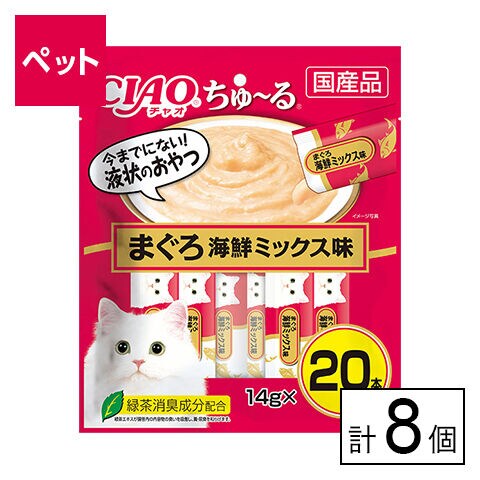 【D】(送料込)CIAO ちゅ~る まぐろ 海鮮ミックス味 14g×20本入×8個《沖縄・離島配送不可》