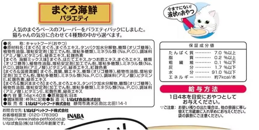 ・一度食べたらやみつき!猫ちゃんの好きなを素材を液状にしたおやつです。