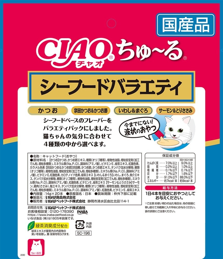 【D】(送料込)CIAO ちゅ~る シーフードバラエティ 20本入×16個《沖縄・離島配送不可》