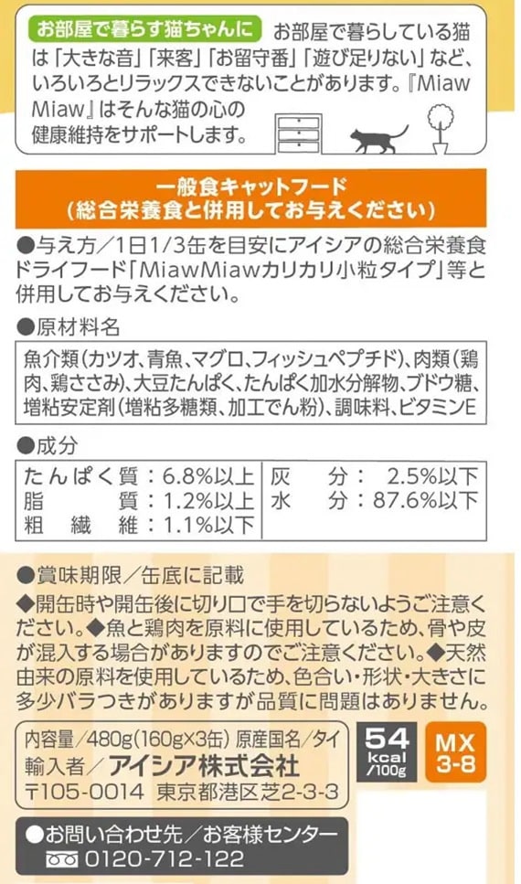 【D】(送料込)MiawMiaw ささみ入り鮪 480g(160g×3缶パック)×9個《沖縄・離島配送不可》
