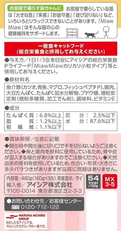 【D】(送料込)MiawMiaw まぐろ 480g(160g×3缶パック)×9個《沖縄・離島配送不可》