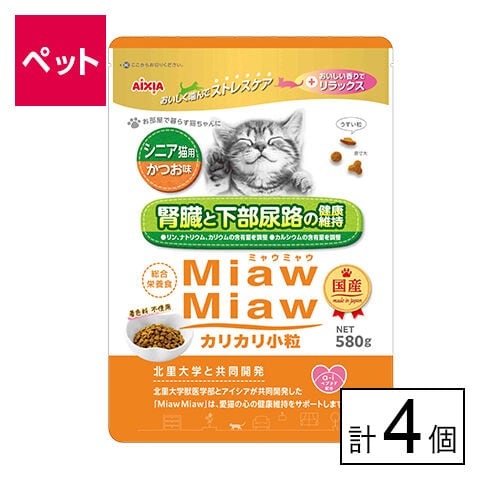【D】(送料込)MiawMiaw カリカリ小粒 シニア猫用 かつお味 580g×4個《沖縄・離島配送不可》