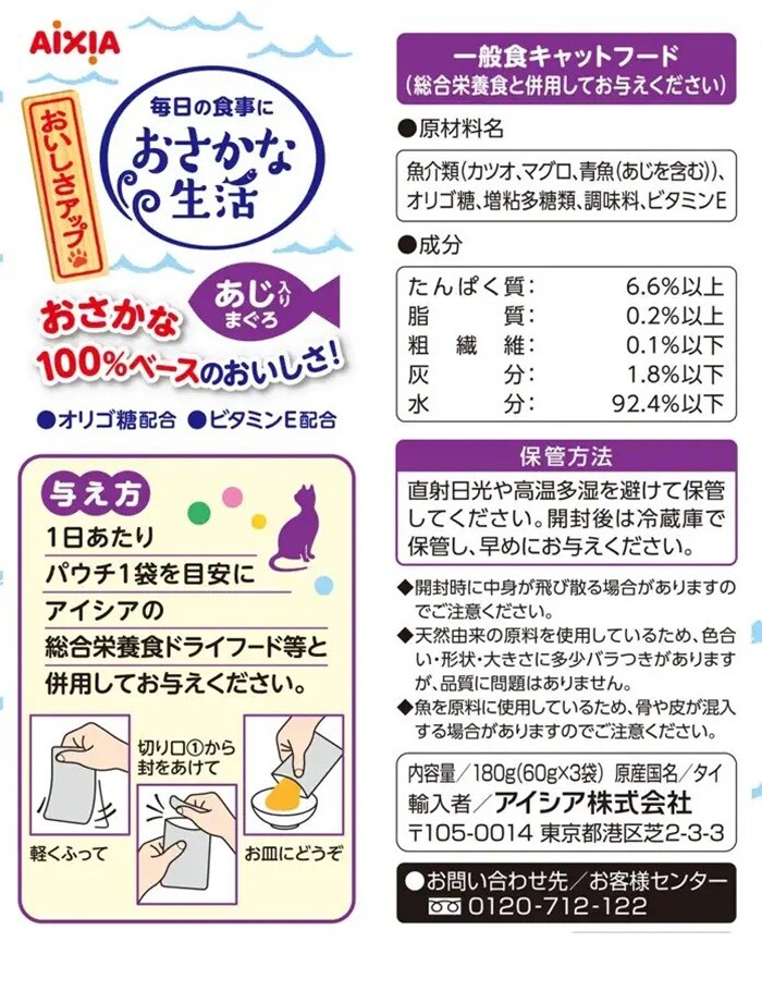 【D】(送料込)おさかな生活 あじ入りまぐろ 180g(60g×3袋入)×12個《沖縄・離島配送不可》