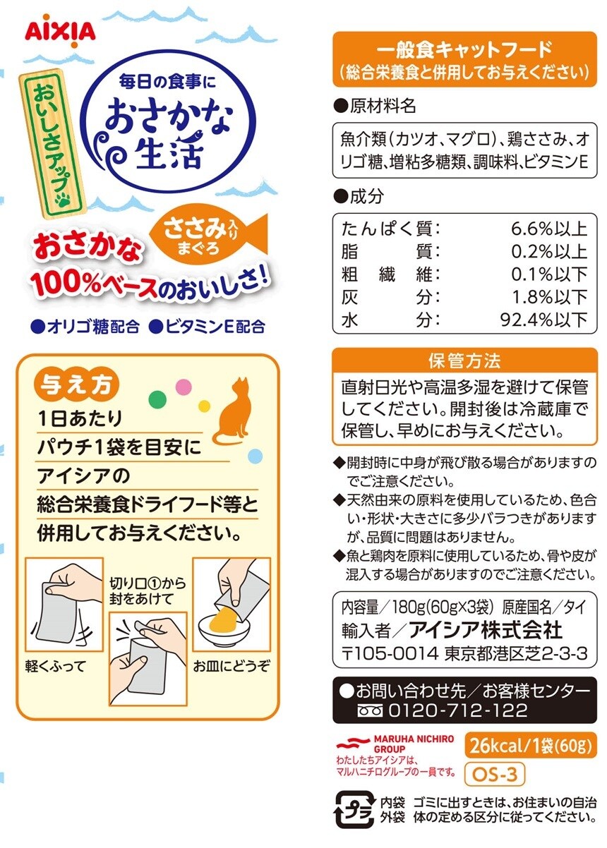 【D】(送料込)おさかな生活 ささみ入りまぐろ 180g(60g×3袋入)×12個《沖縄・離島配送不可》