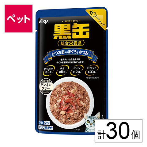 【D】(送料込)黒缶パウチ かつお節入りまぐろとかつお 70g×30個《沖縄・離島配送不可》