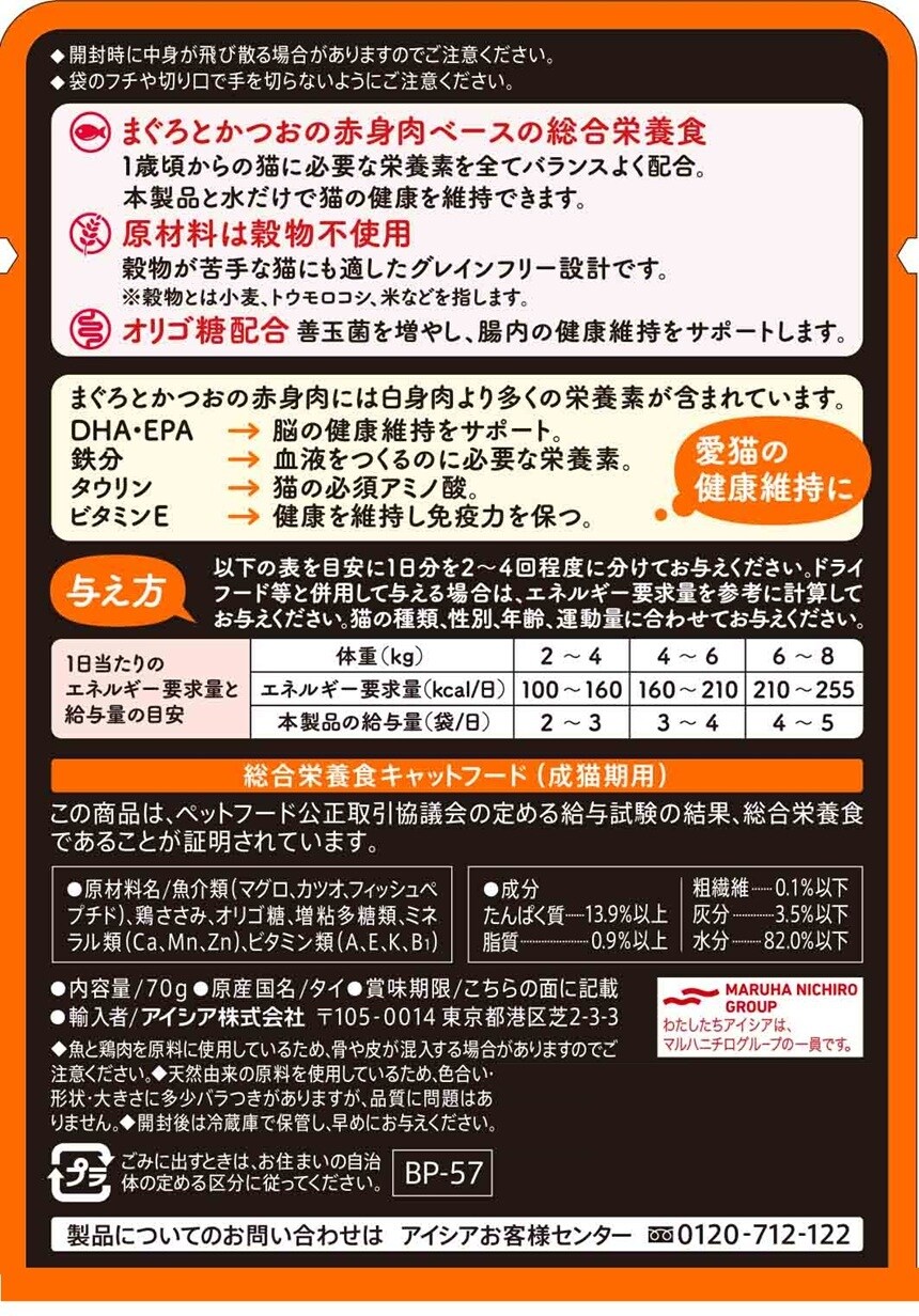 ・DHA、EPA、鉄分、タウリン、ビタミンEを含むまぐろとかつおの赤身肉ベースの総合栄養食です。