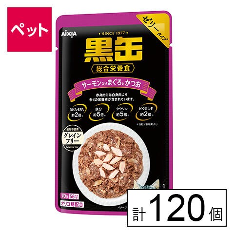 【D】(送料込)黒缶パウチ サーモン入りまぐろとかつお 70g×120個《沖縄・離島配送不可》