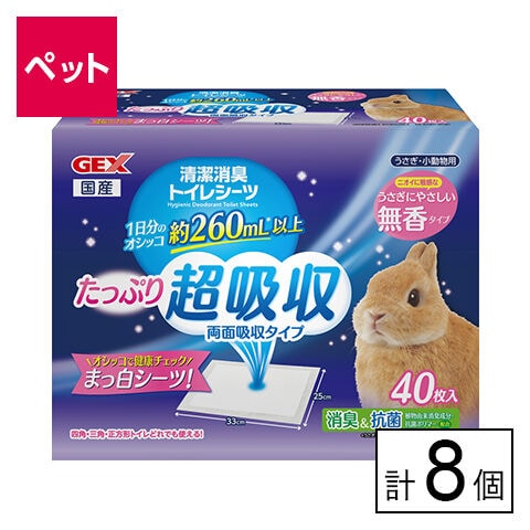 ・1日1枚でしっかり吸収。ボリュームたっぷりの40枚入り。(うさぎ1匹(体重2kg)の平均量260ml/日での使用例。飼育しているうさぎの体重や体調、季節によって変化します。)