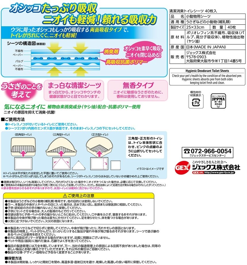 ・1日1枚でしっかり吸収。ボリュームたっぷりの40枚入り。(うさぎ1匹(体重2kg)の平均量260ml/日での使用例。飼育しているうさぎの体重や体調、季節によって変化します。)