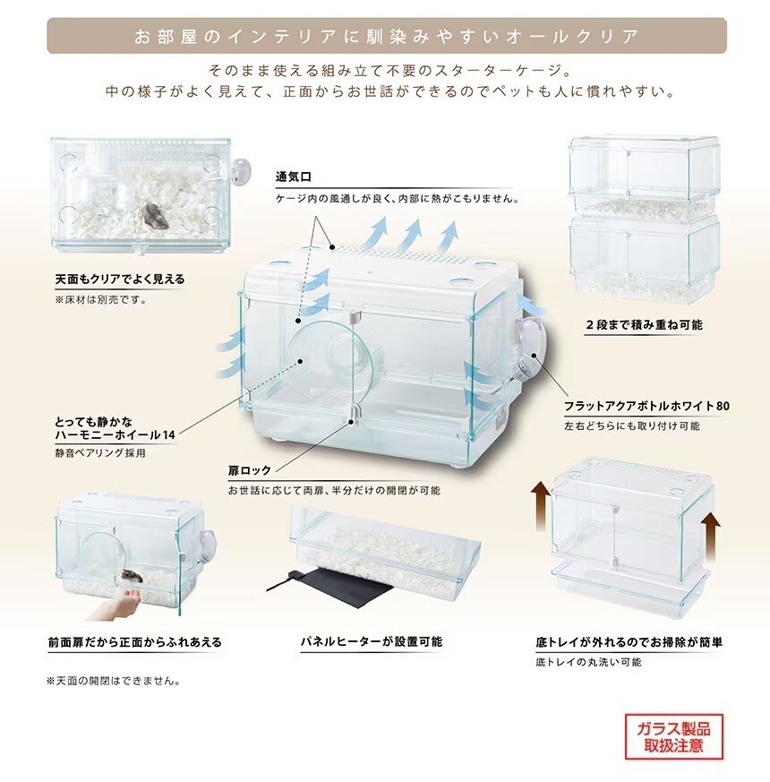 ・中の様子がよく見えて、正面からお世話ができるのでペットも人に慣れやすい。