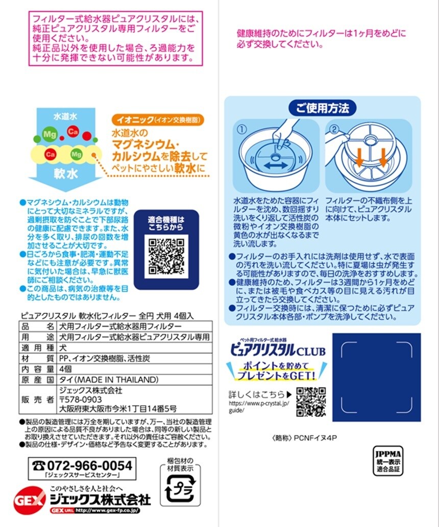【D】(送料込)ピュアクリスタル 軟水化フィルター 全円 犬用 4個入×1個《沖縄・離島配送不可》