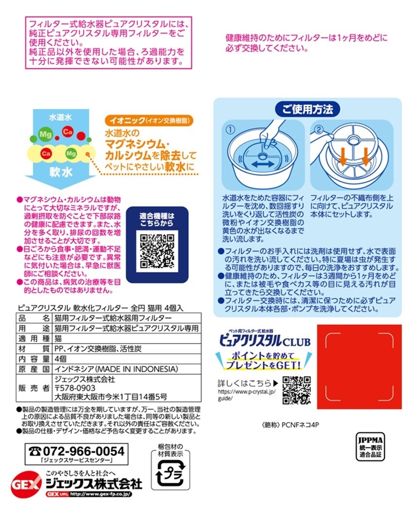 【D】(送料込)ピュアクリスタル 軟水化フィルター 全円 猫用 4個入×2個《沖縄・離島配送不可》