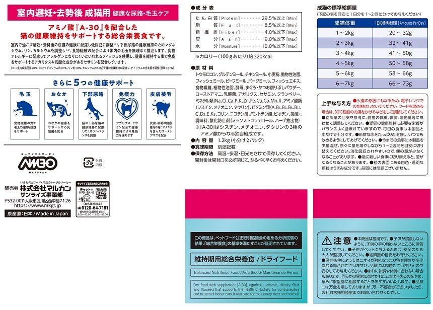 ・アミノ酸『A-30』を配合した、猫の健康維持をサポートする総合栄養食です。