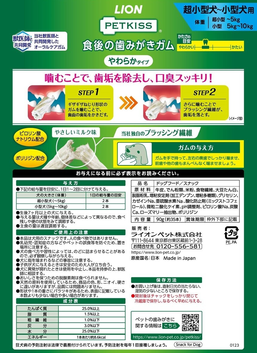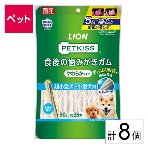 【D】(送料込)PETKISS 食後の歯みがきガム やわらかタイプ 超小型犬~小型犬用 90g(約35本入)×8個《沖縄・離島配送不可》