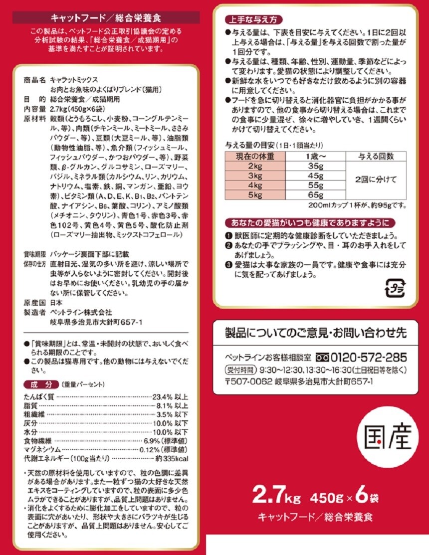 ・お肉もお魚も大好きなよくばりな愛猫のために、お肉味・かつお味・野菜味をミックス。