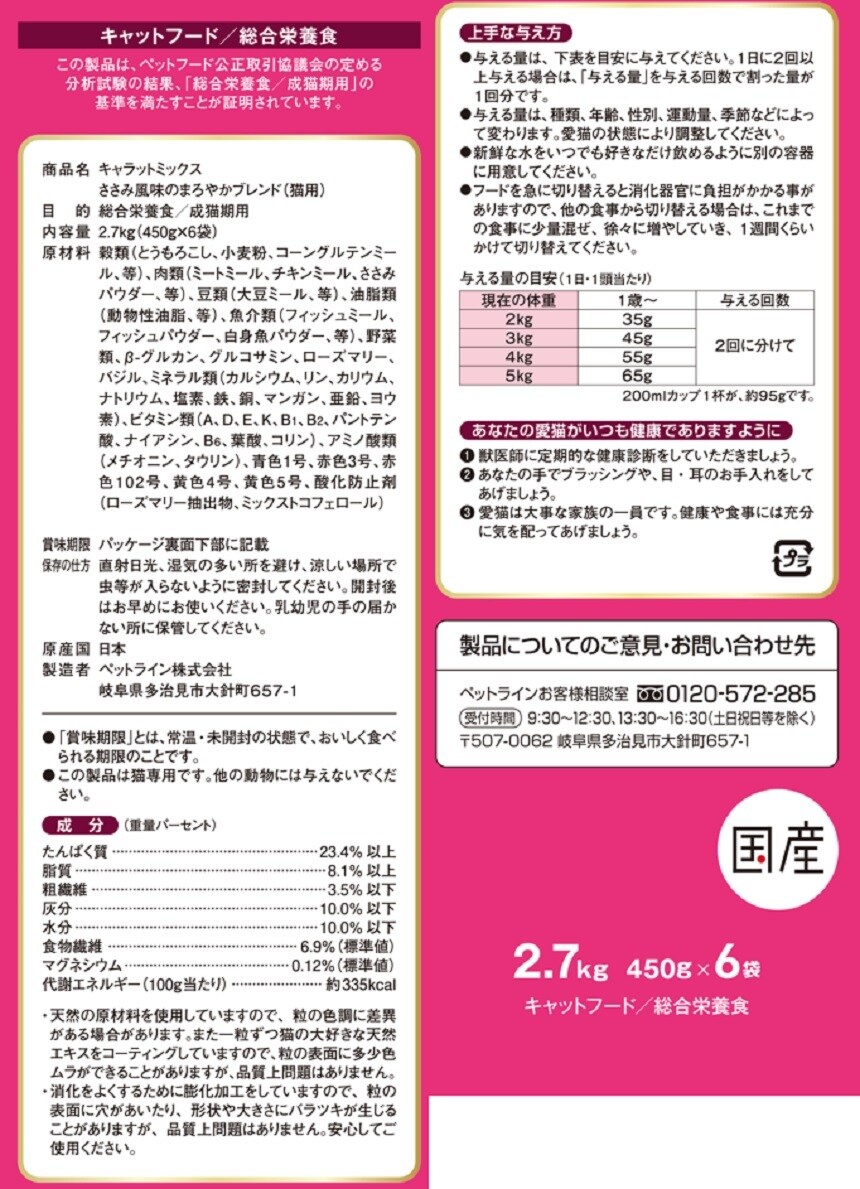 【D】(送料込)キャラットミックス ささみ風味のまろやかブレンド 2.7kg(450g×6袋)×2個《沖縄・離島配送不可》