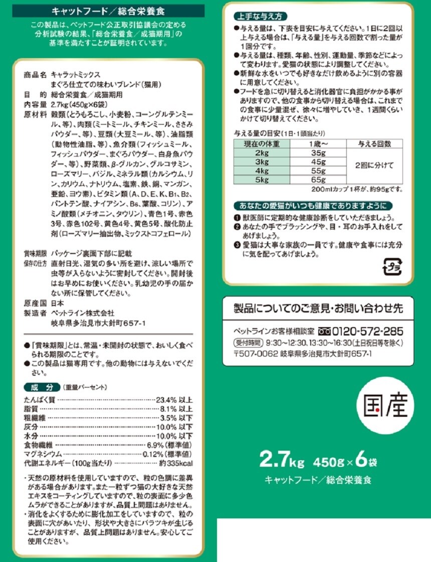 【D】(送料込)キャラットミックス まぐろ仕立ての味わいブレンド 2.7kg(450g×6袋)×2個《沖縄・離島配送不可》
