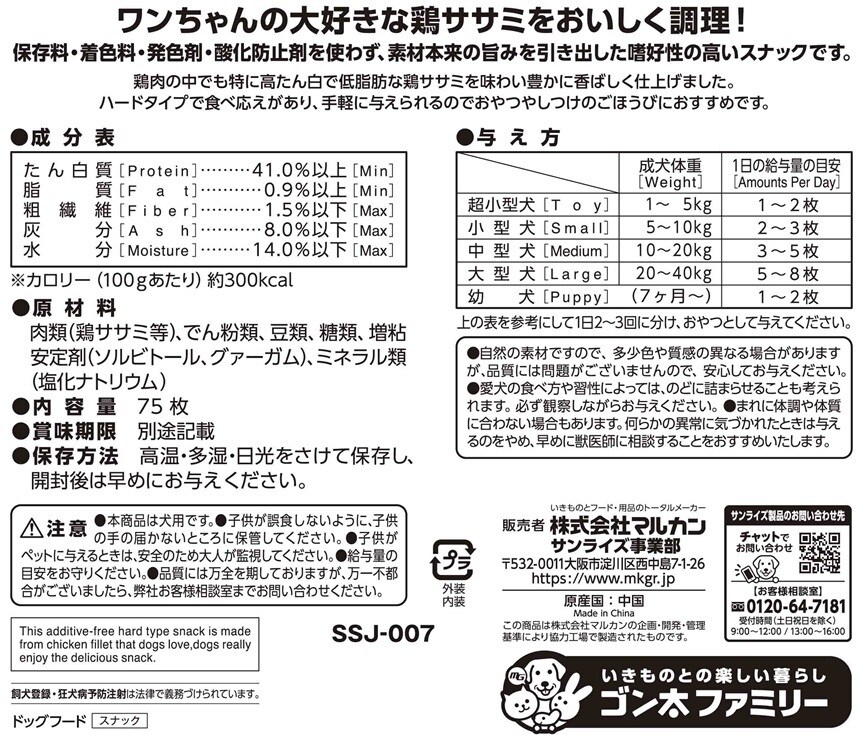 【D】(送料込)ゴン太のおすすめササミジャーキー 75枚×4個《沖縄・離島配送不可》