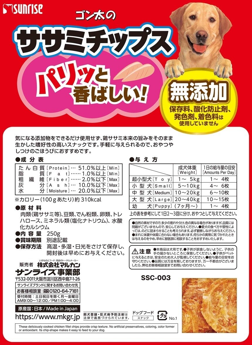 気になる添加物をできるだけ使用せず、鶏ササミ本来の旨みをそのまま生かした嗜好性の高いスナックです。