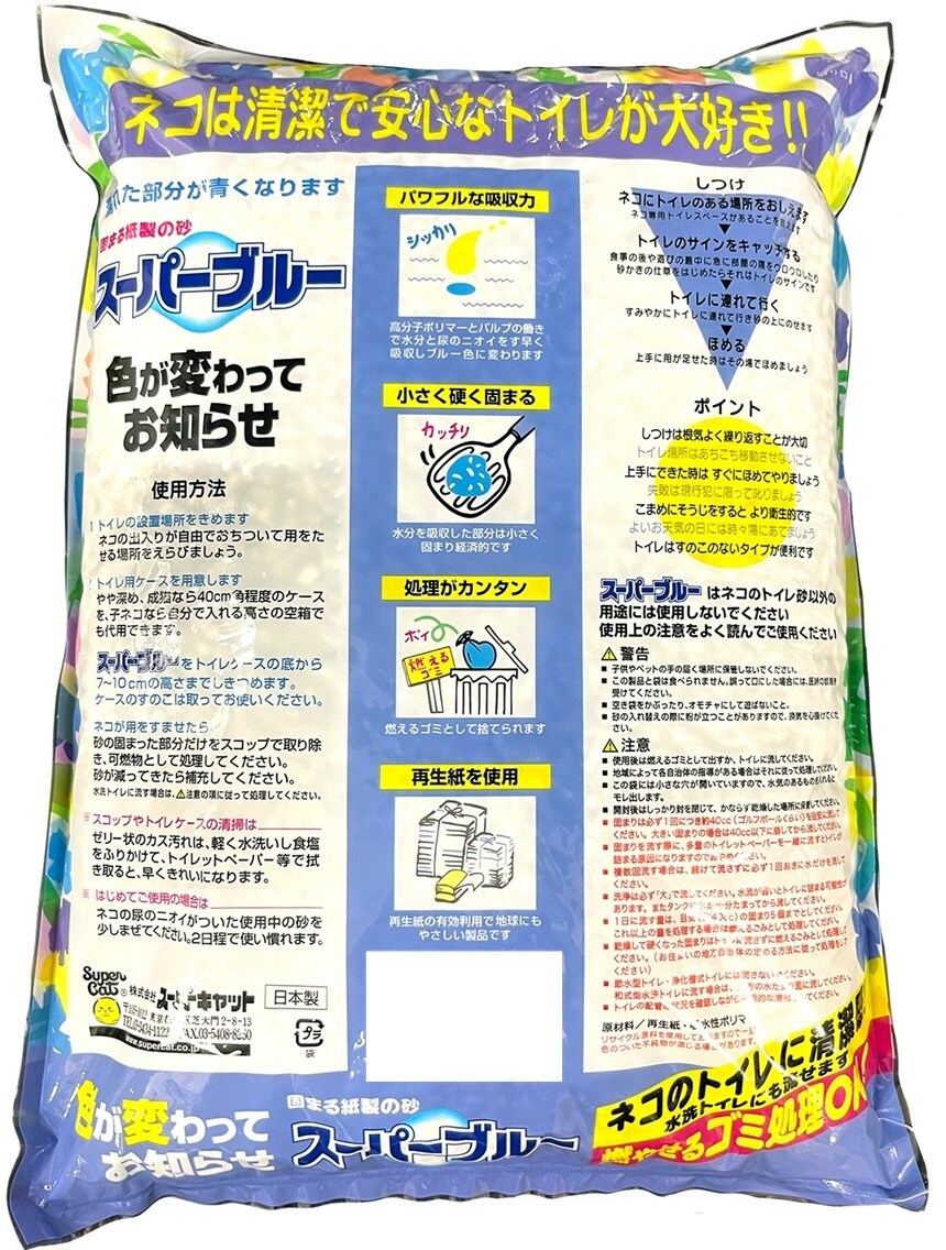 ・小さく固まり経済的!濡れた部分がブルーに変わってお知らせ!燃やせて水洗トイレにも流せるので、ゴミ処理楽々!