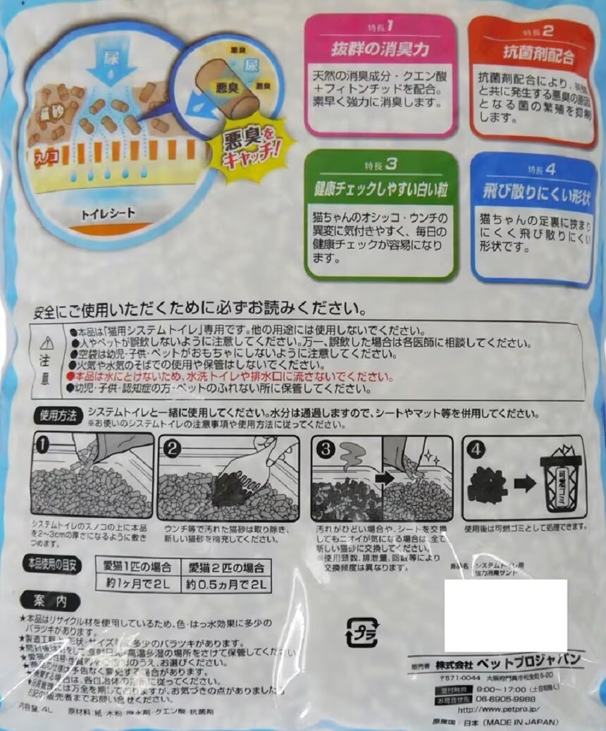 天然の消臭成分で強力消臭!抗菌剤配合のシステムトイレ用猫砂