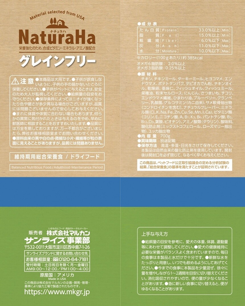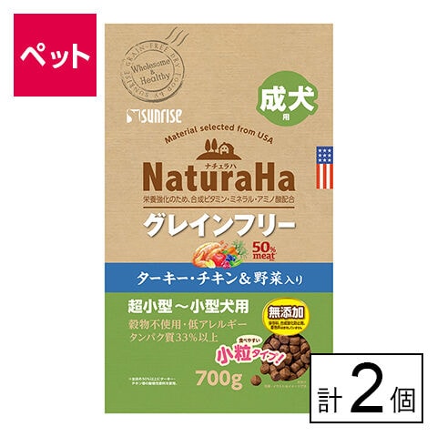 【D】(送料込)ナチュラハ グレインフリー ターキー・チキン&野菜入り 成犬用 小粒 700g×2個《沖縄・離島配送不可》
