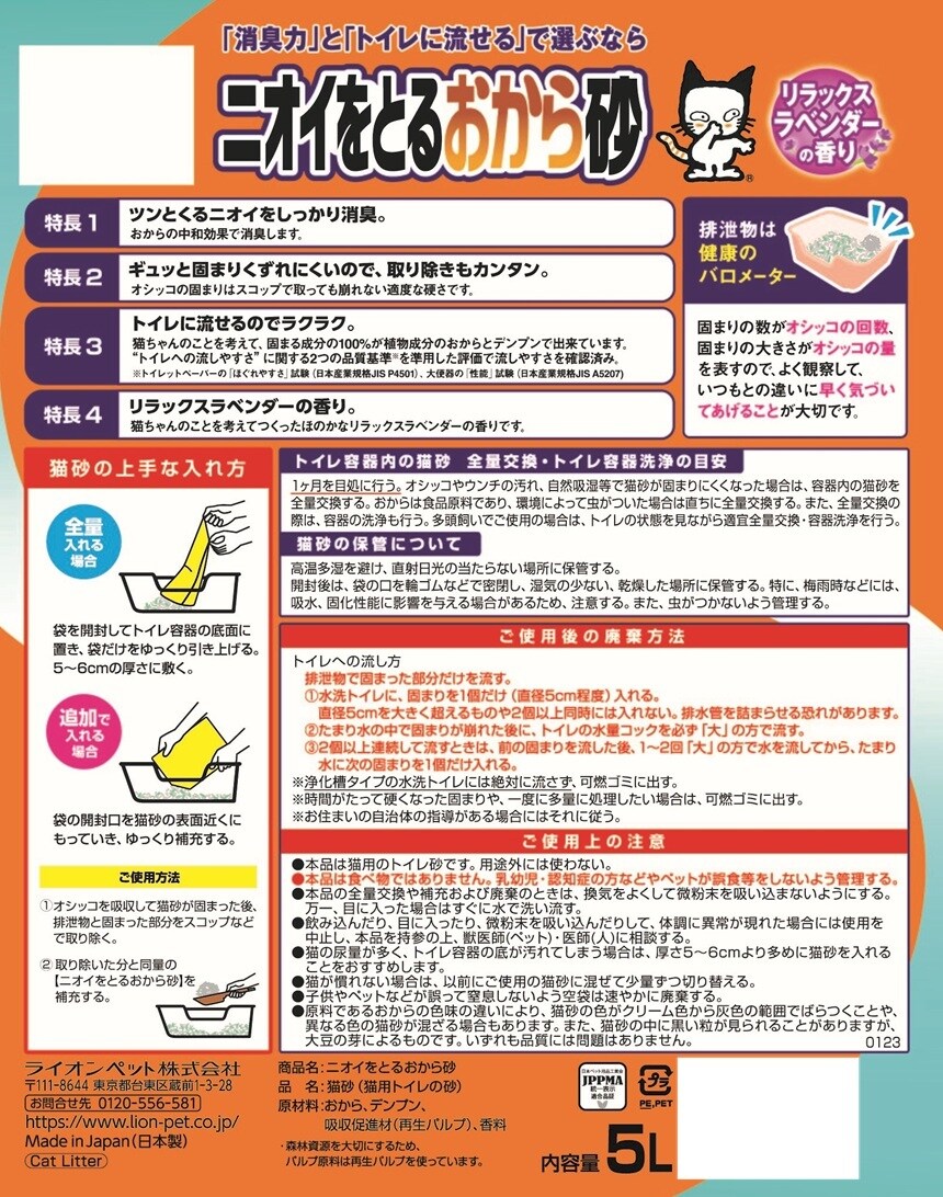 【D】(送料込)ニオイをとるおから砂 5L×3個《沖縄・離島配送不可》のレビュー