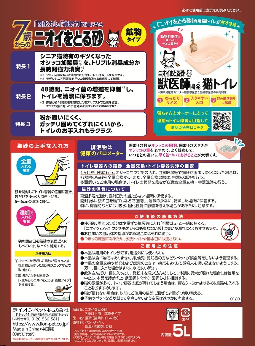 【D】(送料込)ニオイをとる砂 7歳以上 鉱物タイプ 5L×2個《沖縄・離島配送不可》