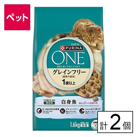 【D】(送料込)ピュリナワンキャット 1歳から全ての年齢に グレインフリー 白身魚 1.6kg×2個《沖縄・離島配送不可》