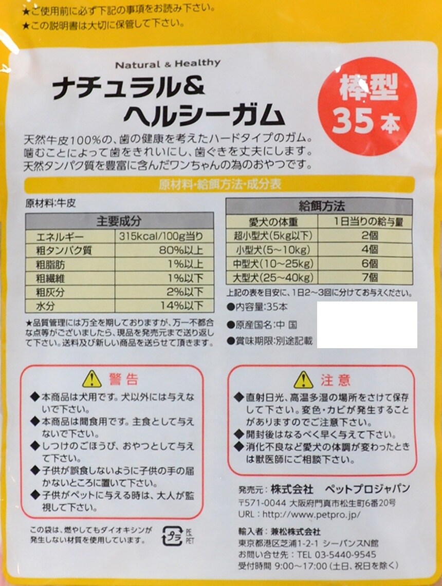【D】(送料込)ペットプロ ナチュラル&ヘルシーガム 棒型 35本入×9個《沖縄・離島配送不可》のレビュー