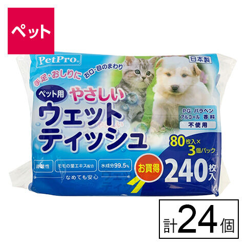 【D】(送料込)ペットプロジャパン やさしいウェットテイッシュ 80枚入×3パック×24個《沖縄・離島配送不可》