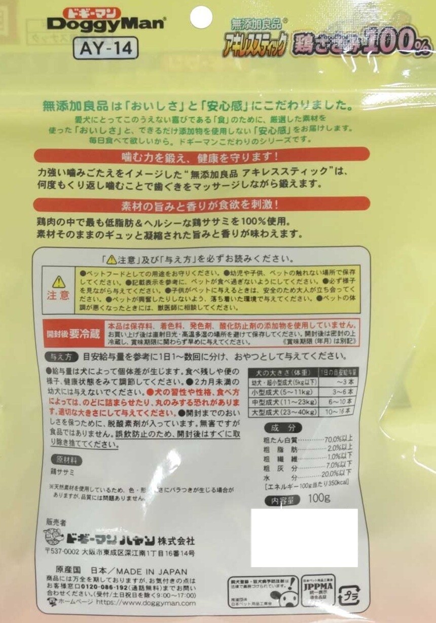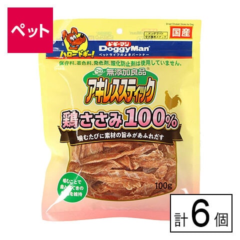 【D】(送料込)無添加良品 アキレススティック 鶏ささみ100% 100g×6個《沖縄・離島配送不可》