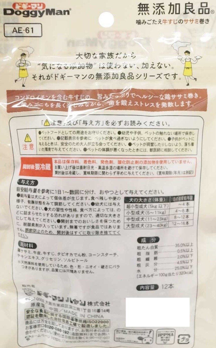 【D】(送料込)無添加良品 噛みごたえ牛すじのササミ巻き 12本入×48個《沖縄・離島配送不可》