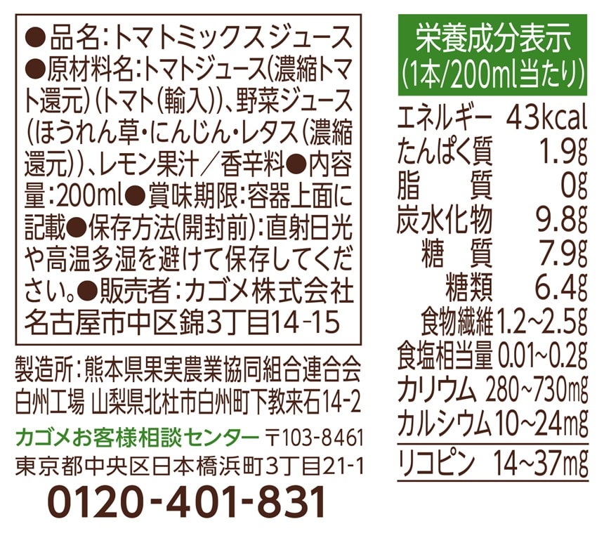 【カゴメ 野菜ジューストマトサラダ】