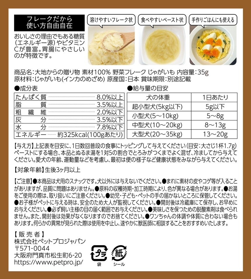 【D】(送料込)HappyDays 大地からの贈り物 素材100%野菜フレーク じゃがいも 35g×20個《沖縄・離島配送不可》